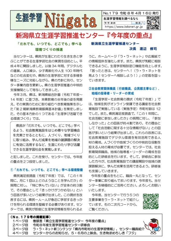 当センター広報紙「生涯学習Niigata第179号」を発行しました。